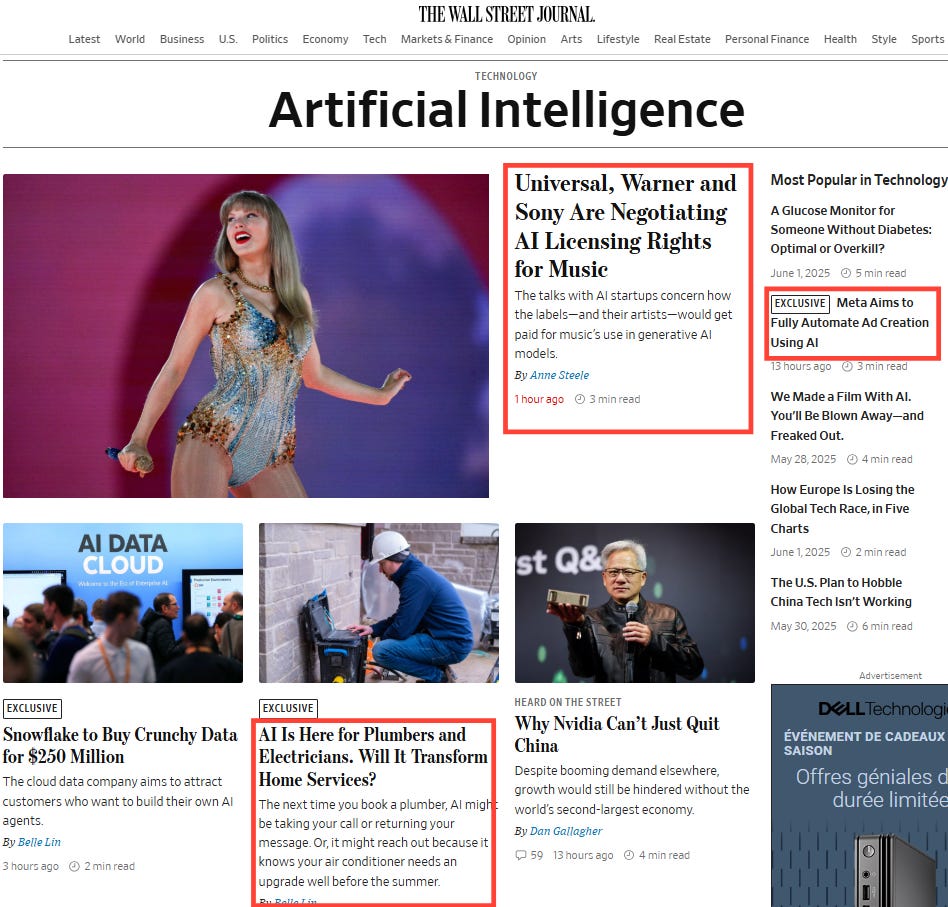 Todayโs headlines on the WSJโs Artificial Intelligence page today serve as a reminder of just how broad the technologyโs reach has become: