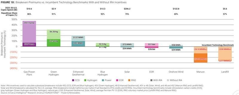 - Only a select few energy transition technologies (including global gas) are building momentum towards commercialization, with battery storage increasingly disrupting U.S. power markets.
