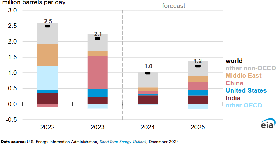 โข Over 2024 and 2025, India accounts for 25% of total oil consumption growth globally, according to the EIA.