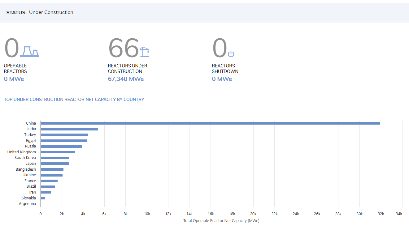 โข For context, 66 reactors (~67 GW) are currently under construction globally, led by ~32 GW in China, 5.4 GW in India and ~4.4 GW in Turkey and Egypt.