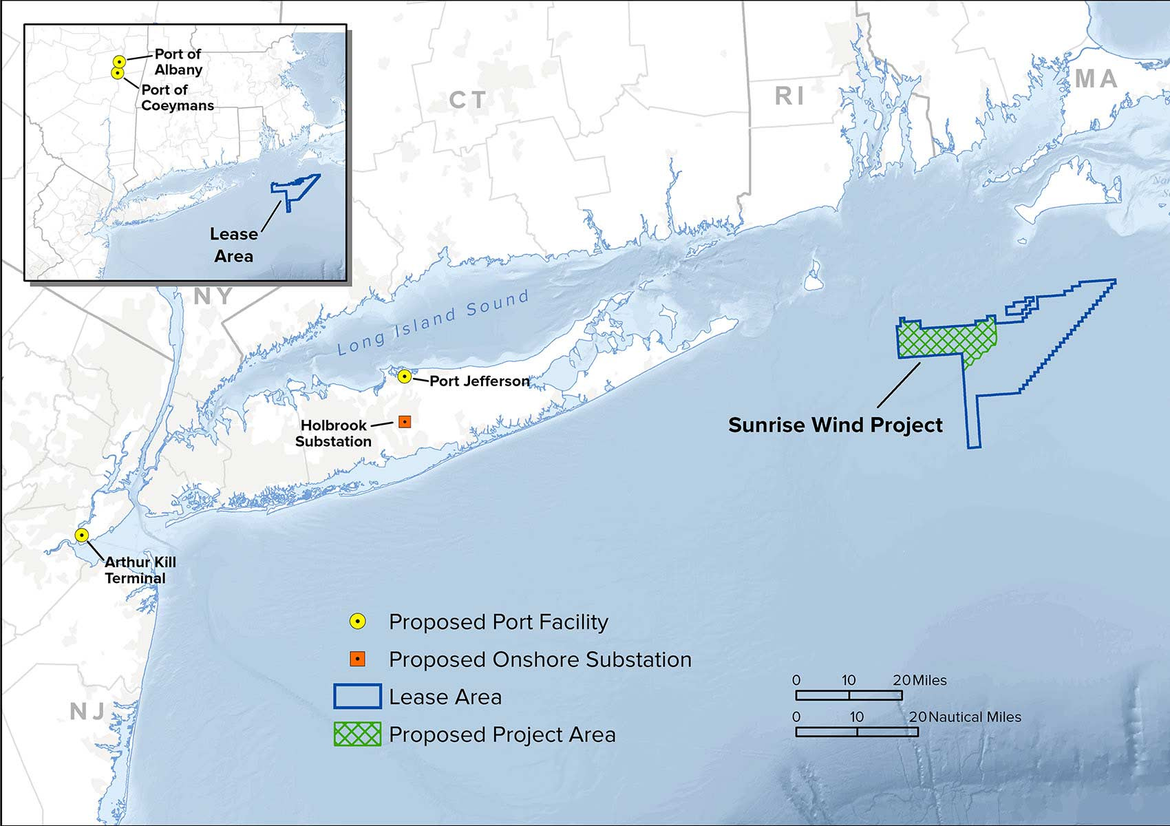 Timeline: The Sunrise sites were originally awarded in 2019 and expected to be operational in 2024, but faced delays due to regulatory and logistical challenges. The project's commissioning has been postponed to the second half of 2027, reflecting challenges across the U.S. offshore wind industry.