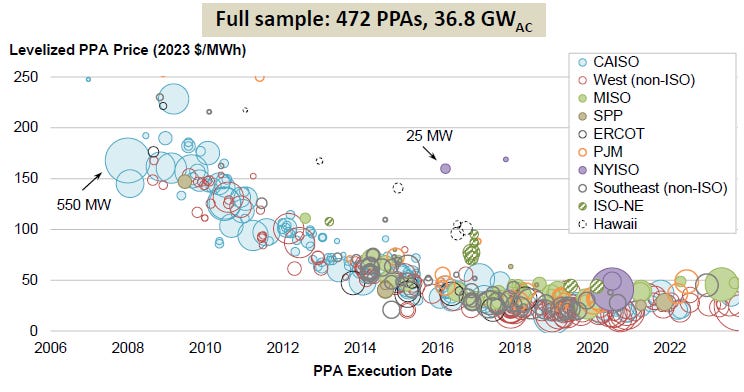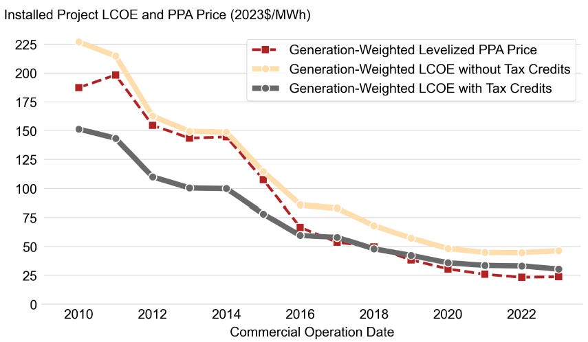 โข Charts are from Berkley Labs โUtility-Scale Solar, 2024 Editionโ report.