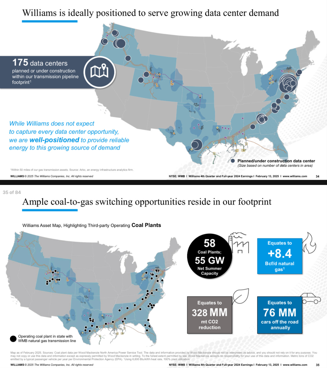One slide highlights data center demand, but you could say "large loads" (of which data centers are the flag bearers). Another points to "coal to gas switching", i.e. substitution targets for gas-fired generation.