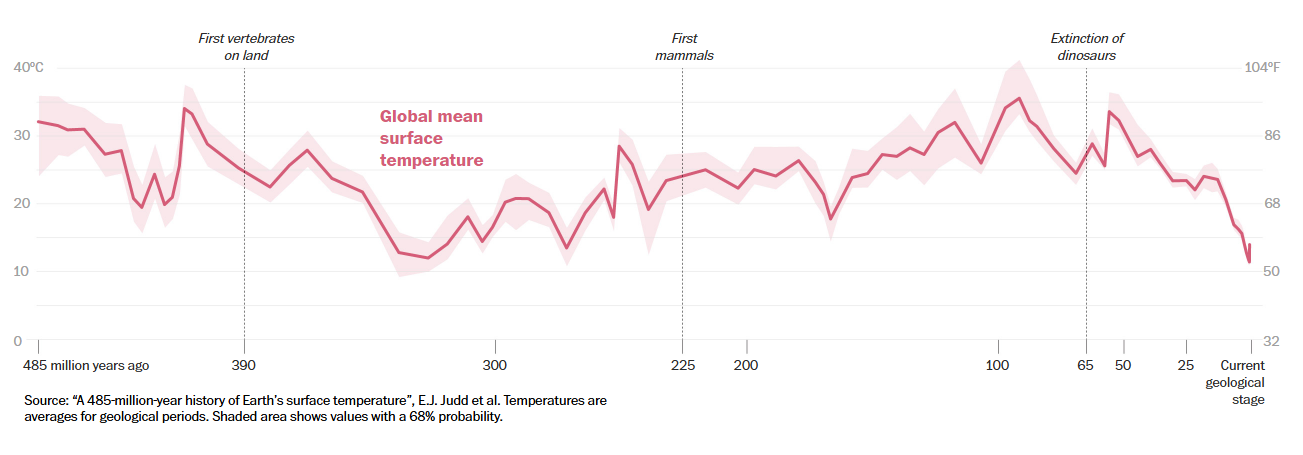 โขย ย The Washington Post: Scientists have captured Earthโs climate over the last 485 million years. Hereโs the surprising place we stand now.