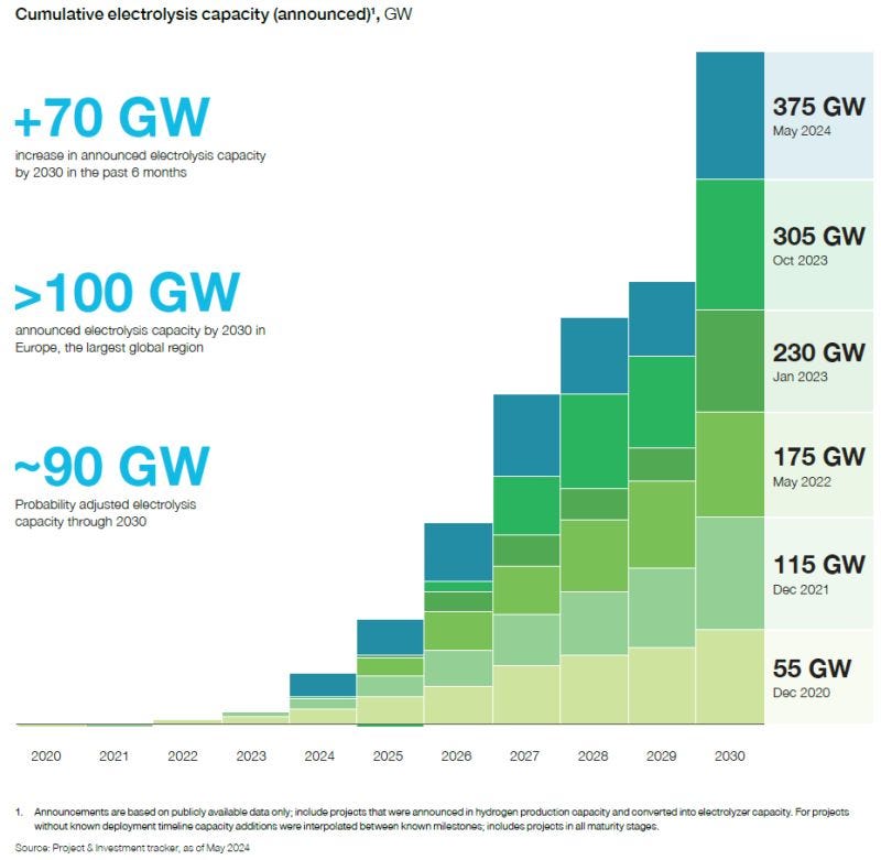 According to the Hydrogen Council's “Hydrogen Insights September 2024” report, a staggering 375 GW of announced electrolyzer capacity is slated to come online globally by 2030, with North America accounting for over 30 GW—up 60% from their previous assessment.