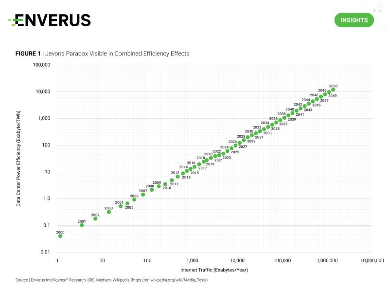The technology learning curves at both the chip and facility levels in data centers are a counterforce to the surge in compute demand driven by AI.